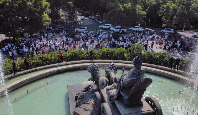 Decenas de hinchas del Real Madrid celebraron este sábado en la Plaza de la Cibeles de la capital mexicana el decimoquinto triunfo del equipo en la Liga de Campeones de Europa, tras derrotar por 0-2 al Borussia Dortmund alemán.