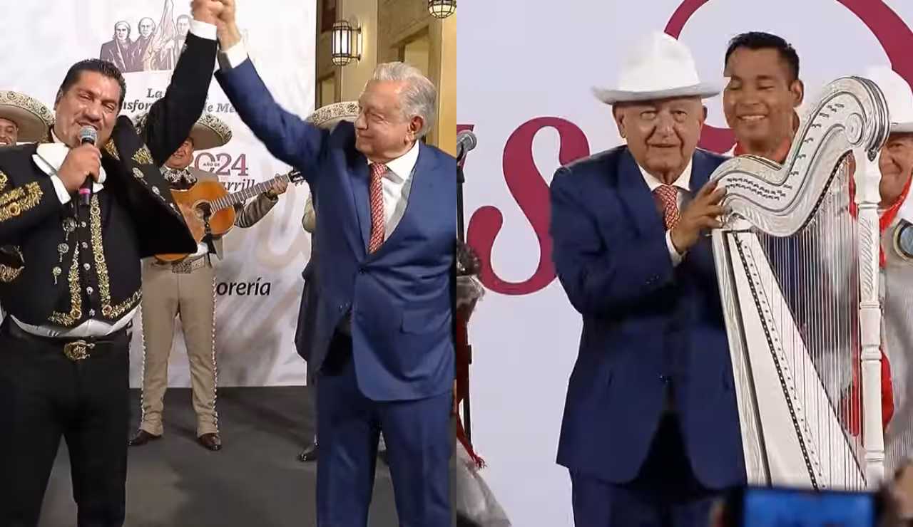 El mariachi “Son de México” amenizó la celebración con canciones como “En tu día”, “Hasta que te conocí” y “Te lo pido por favor”. Mientras tanto, López Obrador, de pie y con las manos atrás, disfrutó de la música, especialmente de las emblemáticas canciones de Juan Gabriel.