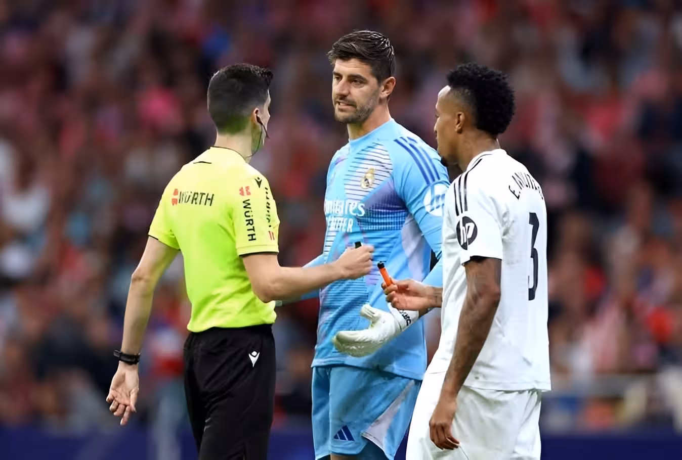 El gol provocó la euforia en el Madrid y frustración en la afición colchonera, que comenzaron a lanzar objetos hacia Courtois, lo que obligó a suspender el partido momentáneamente.