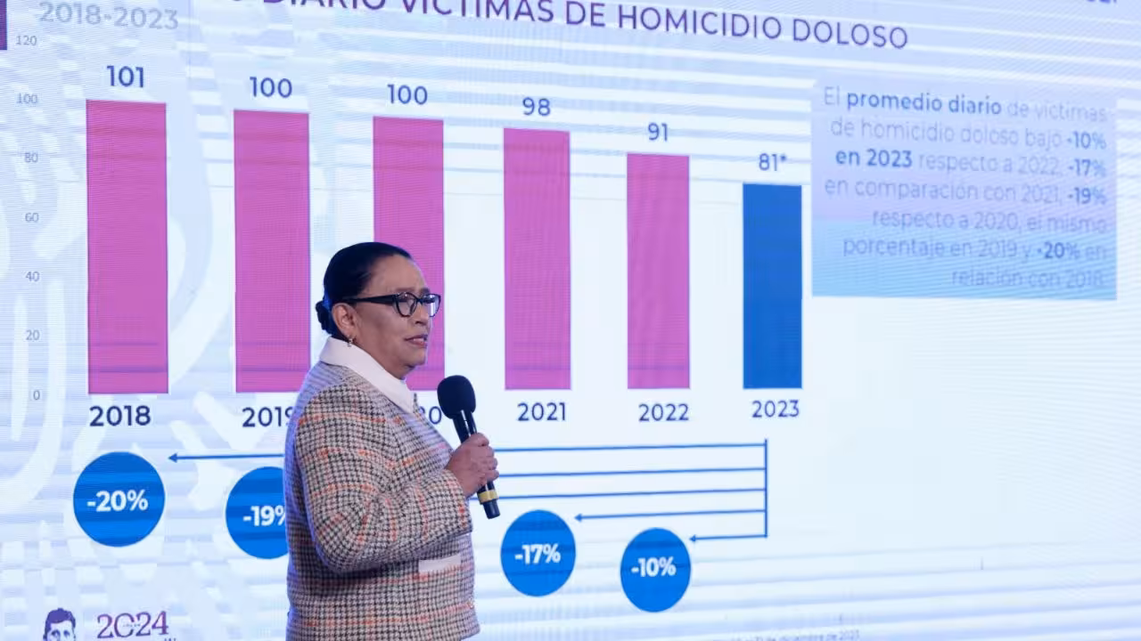Además, Rosa Icela Rodríguez destacó una tendencia a la baja en la incidencia delictiva del fuero común de enero a diciembre de 2023, en comparación con el mismo periodo de 2022.