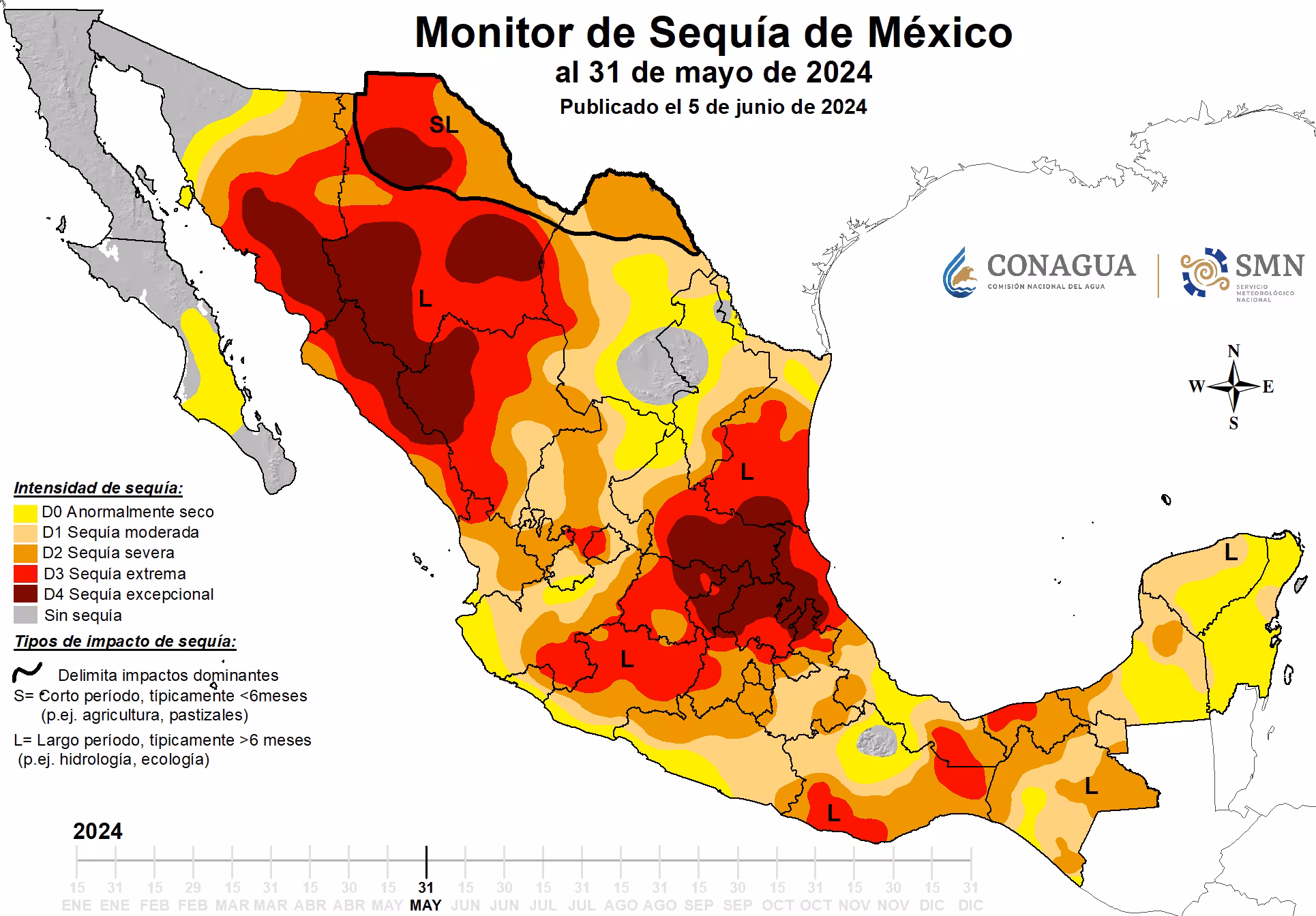 De acuerdo con el MSM, en la sequía excepcional las pérdidas de cultivos y pastos son excepcionales, hay excepcionales riesgos de incendios, carencia de agua en presas, arroyos y pozos, todo lo cual crea una situación de emergencia excepcional.