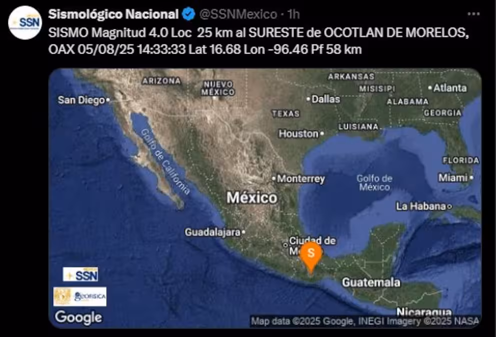 Ciudad de México, 5 de agosto de 2025 – Una serie de sismos de magnitud moderada se registraron durante la madrugada y la mañana del martes en las costas de Oaxaca y Chiapas, los cuales generaron una movilización preventiva de los cuerpos de Protección Civil. Afortunadamente, y tras las primeras revisiones, las autoridades de ambos estados confirmaron que no se reportaron daños materiales significativos ni personas lesionadas.